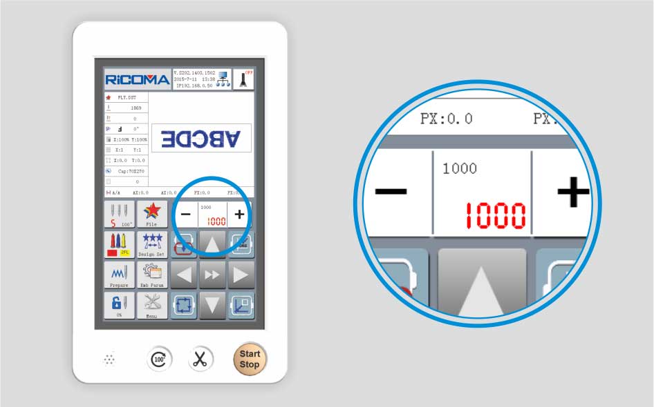 Using advanced network technology, users can link together as many Ricoma machines as desired to an extremely flexible production system. Embroider the same design on all of your machines, or embroider different designs on individual machines simultaneously.